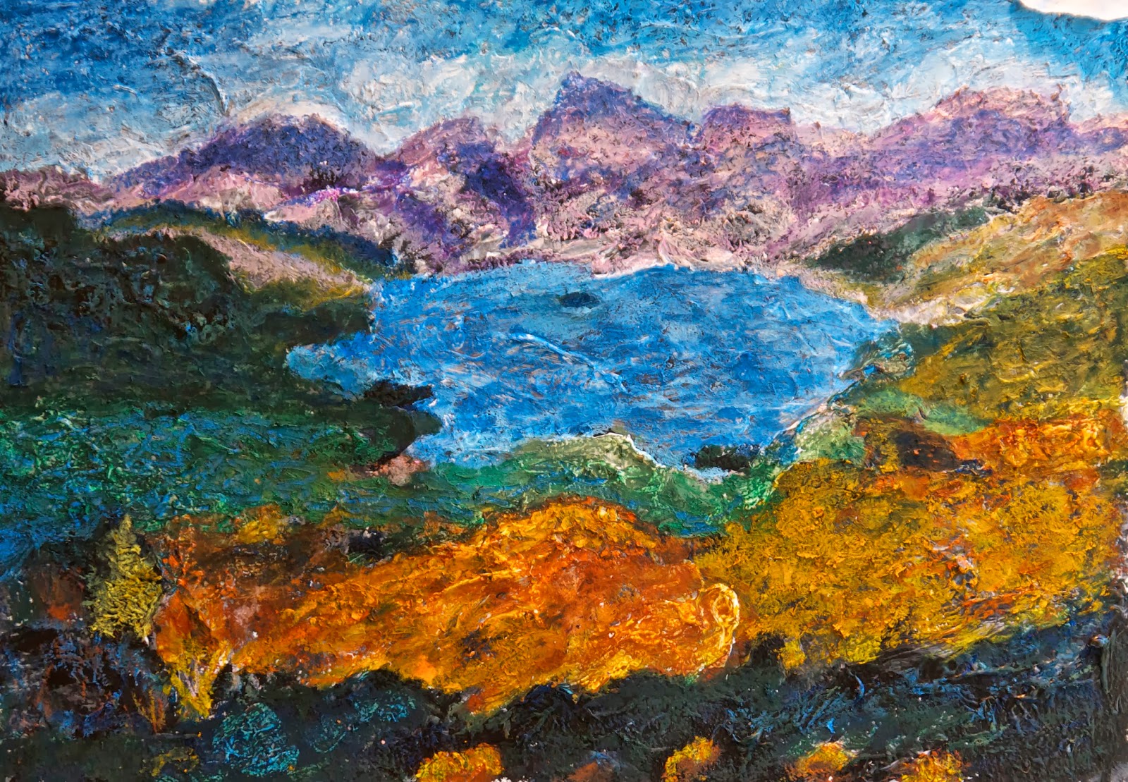 A small group this week with one away on holiday and some folks being poorly - get well soon! We continued our mixed media paintings this week. Fabulous paintings with rich texture and colour. Highly energised feel to all the paintings. Enjoy: